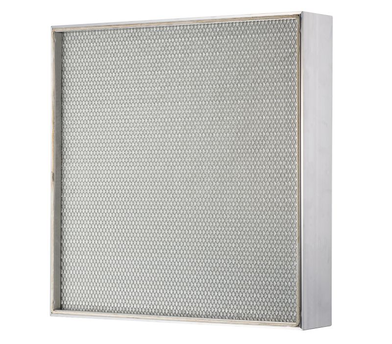 Minipleat technology in extruded aluminum or steel frames. Features handle protection on both sides and an additional protective mesh to prevent mechanical damage.